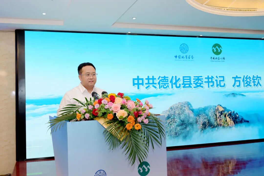 开幕式上,德化县委书记方俊钦表示:德化,作为世界陶瓷之都,不仅孕育了千年陶瓷文化的“窑火辉煌”,更珍藏着亿万年地质演化雕琢的“自然瑰宝”。他期待,各位专家能带来前沿研究成果、地质公园建设管理经验,为德化破解地质资源保护与利用难题、探索“地质+陶瓷+旅游”融合发展路径,提供专业的指导和有力的支撑。他希望,各位专家在学术交流之余,沉浸式体验德化的自然之美、人文之韵,帮助德化把石牛山的地质资源保护好、研究透、利用好,成为推动德化高质量发展的重要力量。