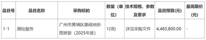 广州市黄埔区基础地形图更新(2025年度)招标项目的潜在投标人应在广东省政府采购网获取招标文件,并于 2025年11月12日 09时30分 (北京时间)前递交投标文件。