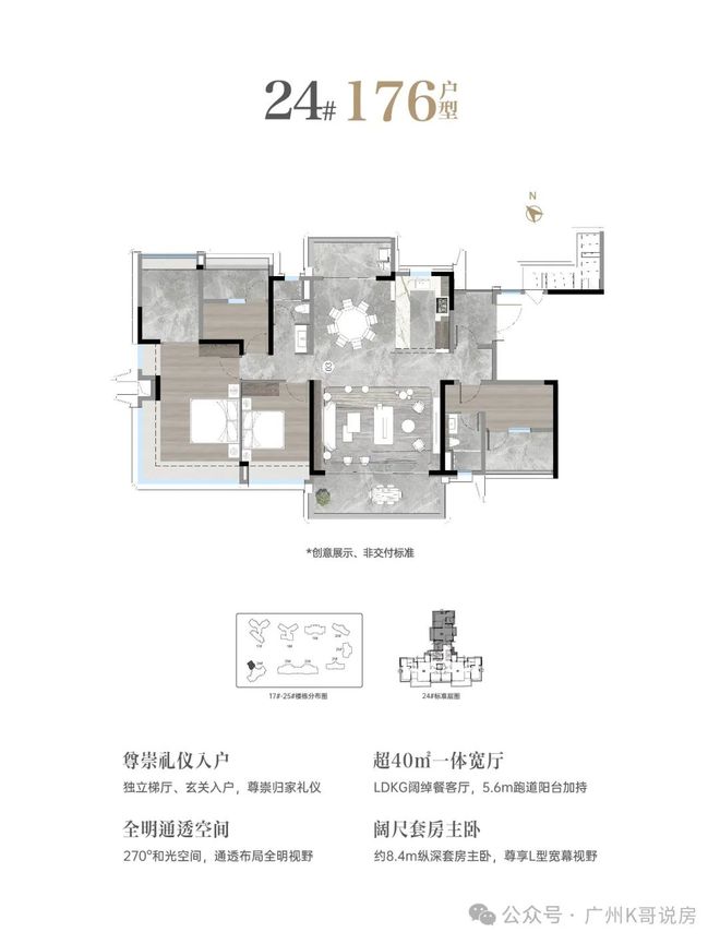 230平户型拥有私家电梯厅、双主套、独立佣人房、南北对流、LDKB大方厅、主卧L型270°飘窗等,大大提升了整体的空间体验。