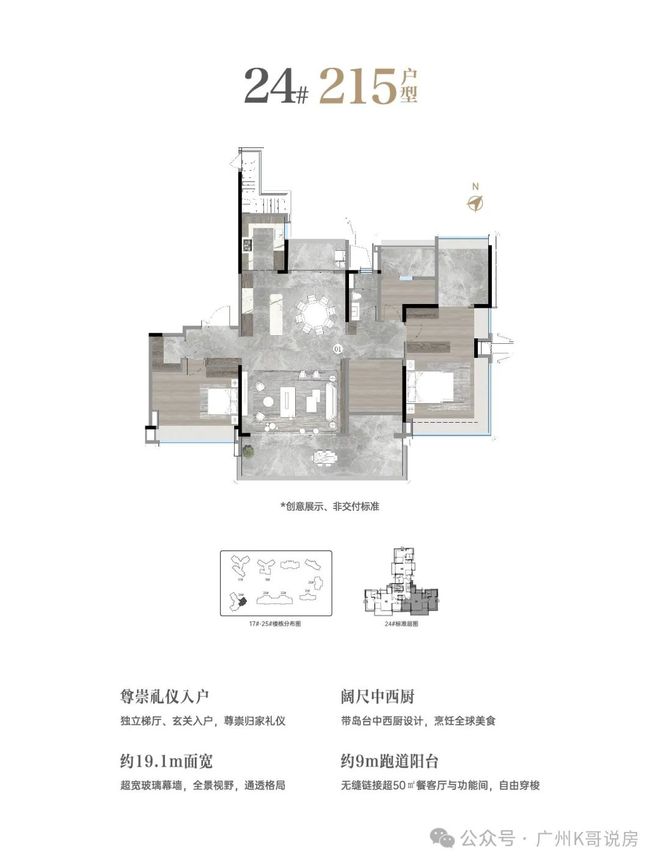 它自成一派高纯度圈层,两梯两户纯板楼,全部是建面约220㎡大平层,总共只有76套。没有200㎡以下入门级豪宅,没有2000万一下的房子,圈层属性高度提纯,项目全盘24栋住宅,如此纯粹的楼栋并不多。