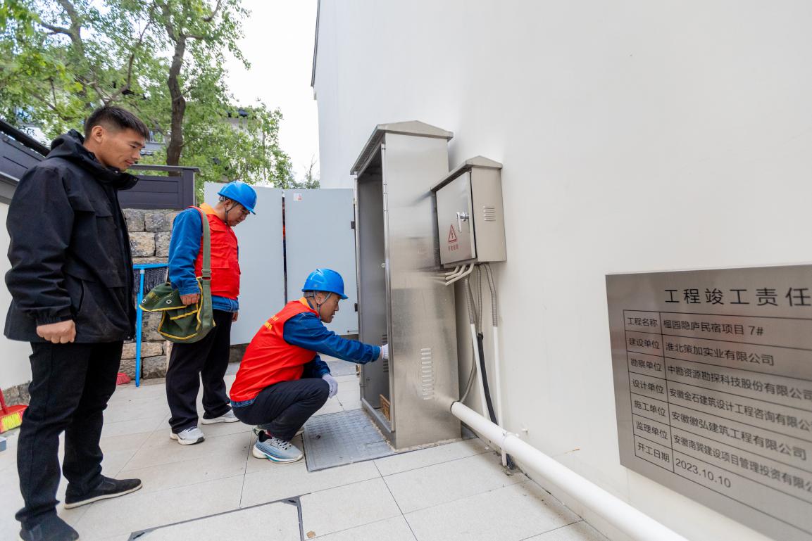 2025年3月,蘧庐民宿建设之初,负责人邵景卫向淮北供电公司烈山中心供电所提出了用电申请,烈山中心供电所当天就安排专业技术人员到现场勘查,制定了配电施工方案。从台区架设一条0.4千伏4*300平方毫米的低压电缆线千瓦,满足蘧庐民宿用电需求。民宿建成后,烈山中心供电所技术人员上门对配电工程进行验收。
